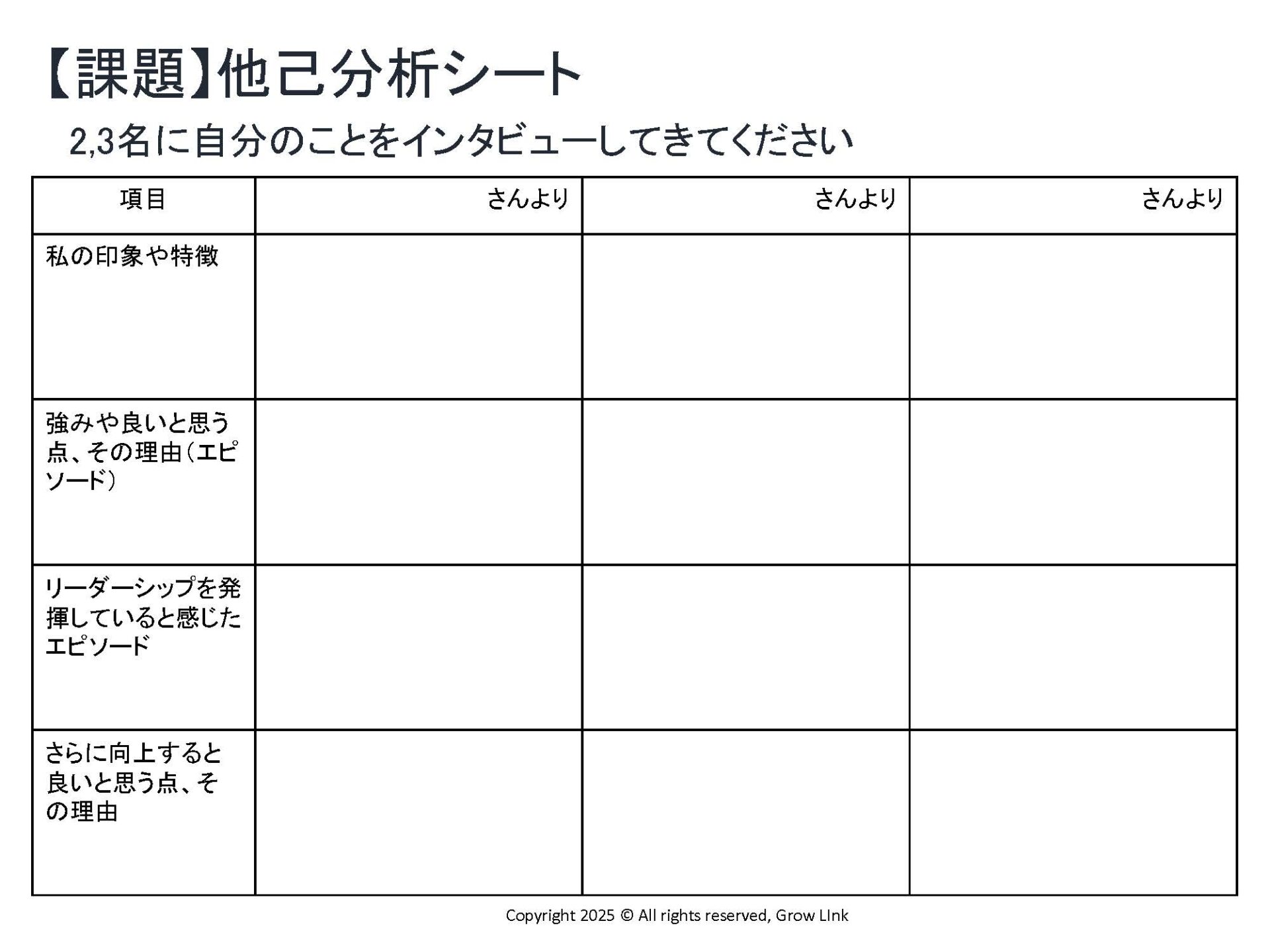 仲間から共有してもらった自分の強みを、チームの中でどう活かせるか。共通の課題を解決するプロセスを通じて、改めて「リーダーシップとは何か」を自分自身に落とし込んでいただければと思います。