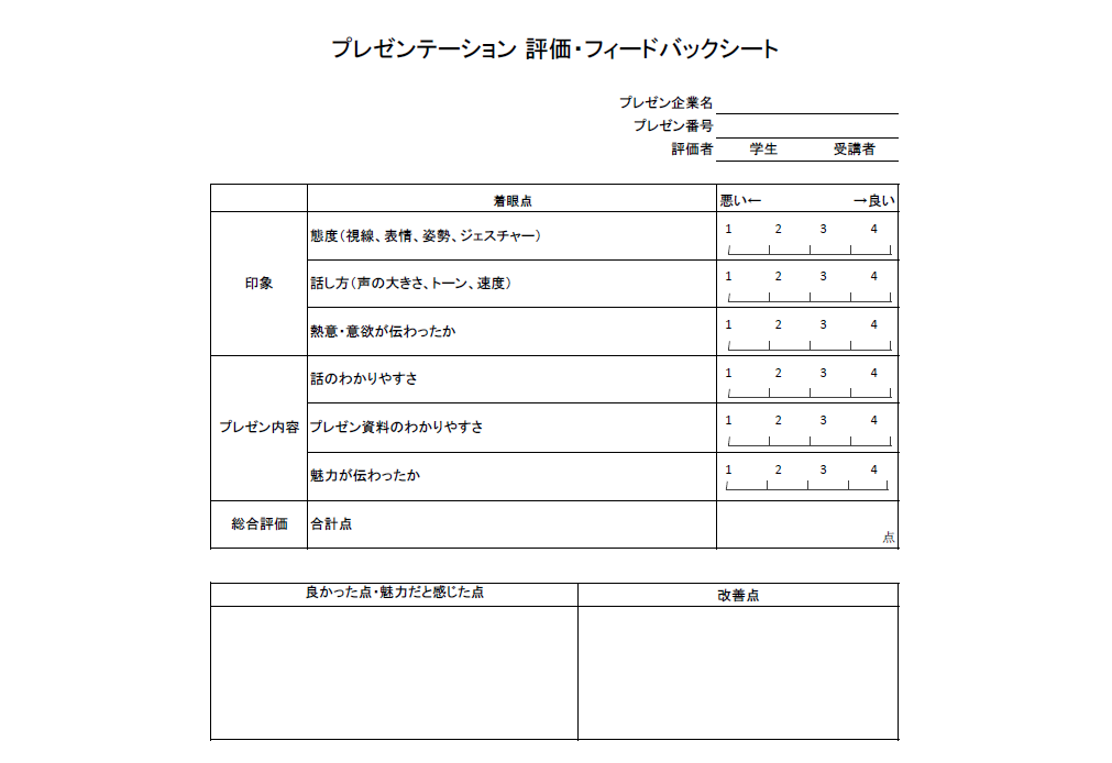 プレゼンを終えると、学生審査員から参加企業へと「フィードバックシート」が渡されます。採用される側(学生審査員)から、採用する側(参加企業)への評価が点数になってフィードバックされます。